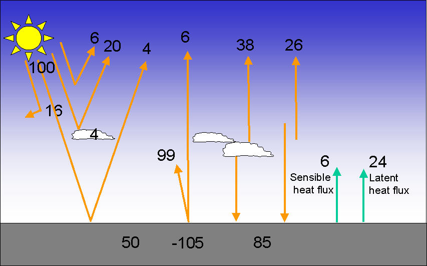 | The Earth's energy budget including the sensible heat flux, transfered through the