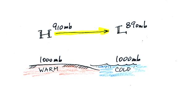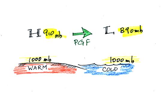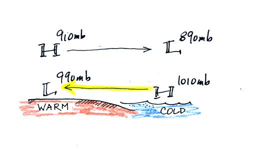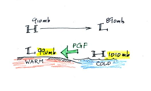 right, the surface pressure at left will decrease (from 1000 mb to 990