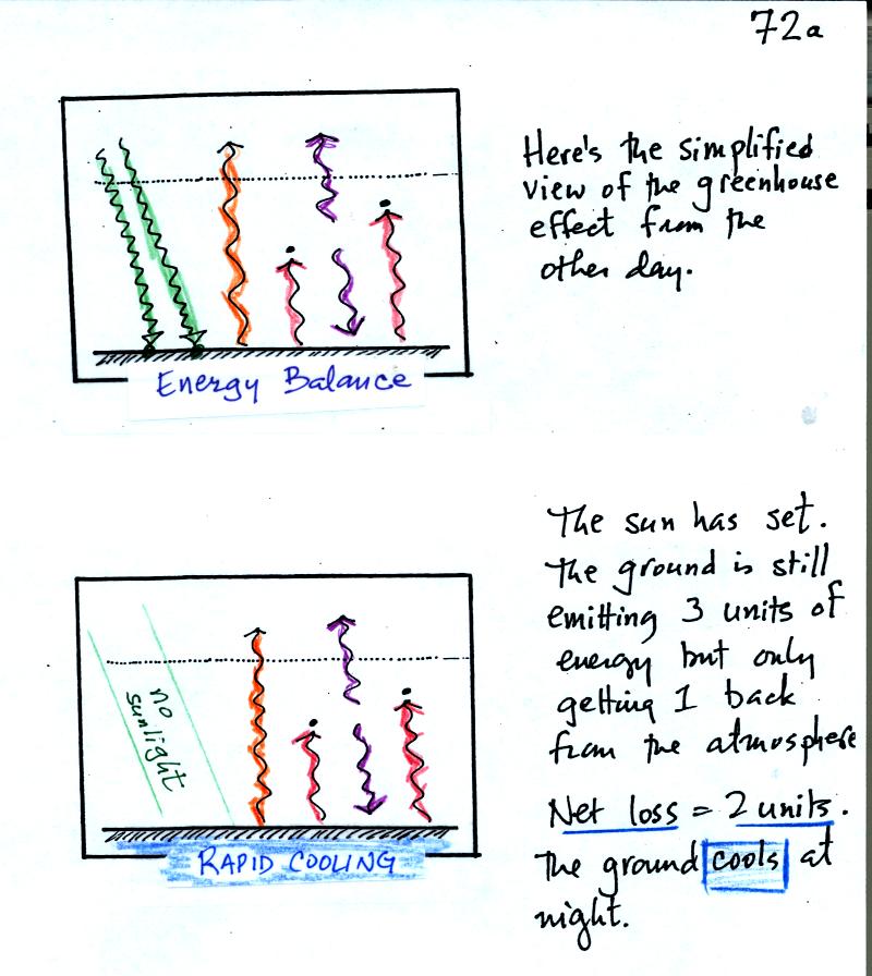 gases (the IR energy emitted by the ground isn't absorbed by gases