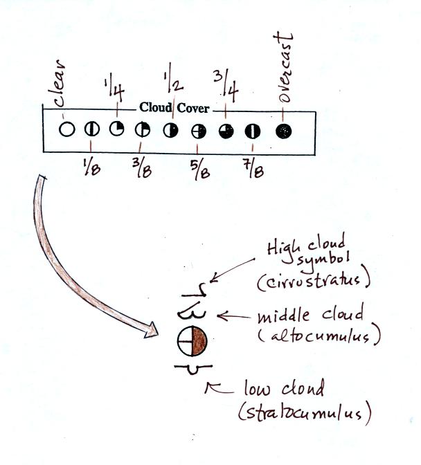 covered with clouds (estimate to the nearest 1/8th of the sky) using