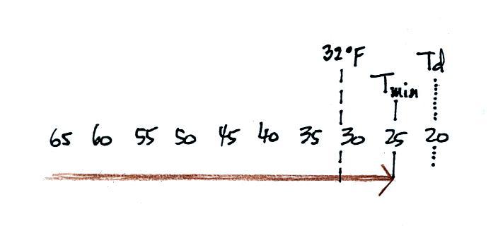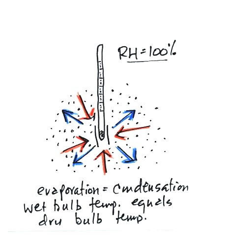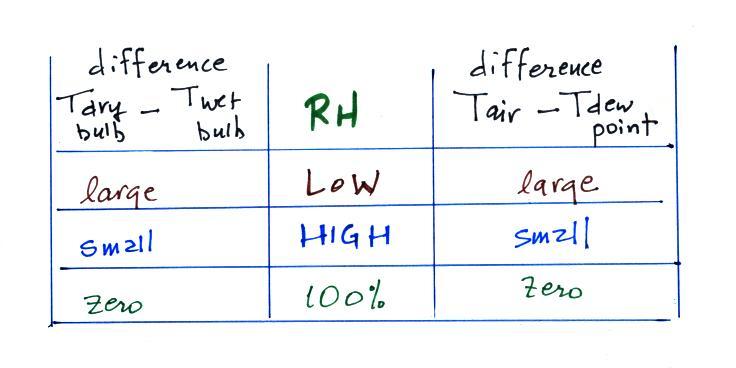 the dry-wet thermometer temperature difference (wet bulb depression)