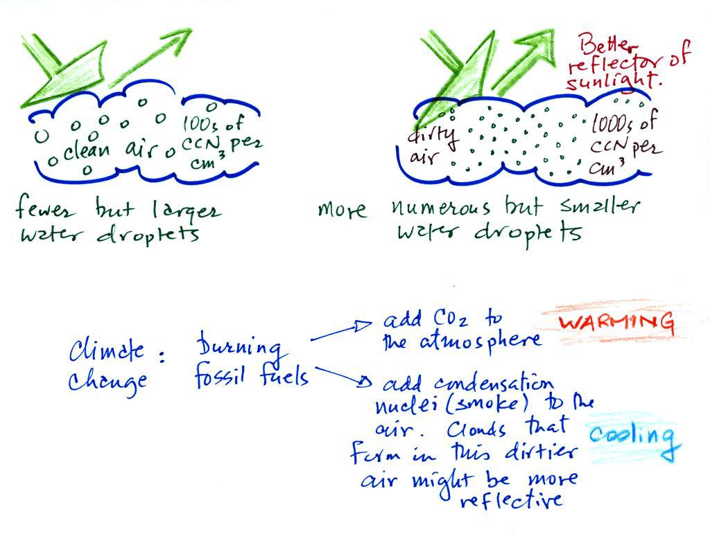 Combustion also adds condensation nuclei to the atmosphere (just like