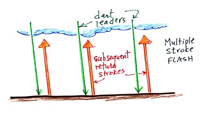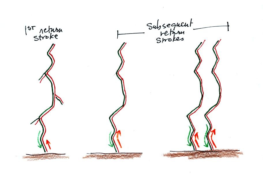 discharge-return stroke sequence repeats itself (multiple times) with a