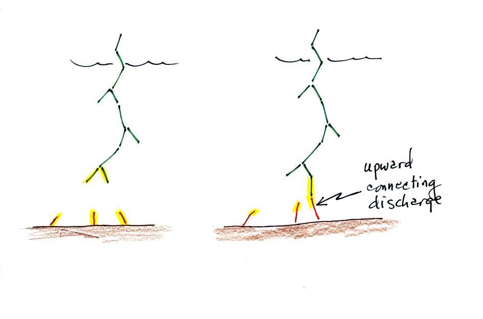 upward toward the stepped leader. One of these will intercept the