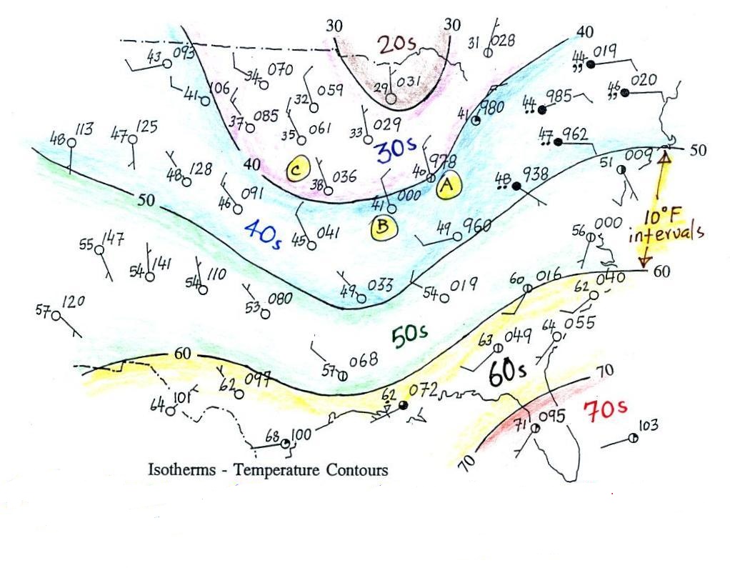 highlighted yellow and is the 1004 mb isobar. The 1002 mb