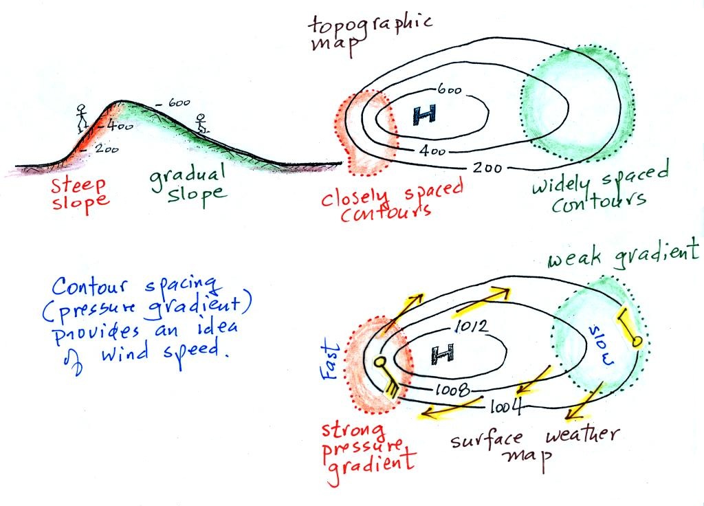 drawn at 4 mb intervals starting at 1000 mb, the 1002 mb and 1006