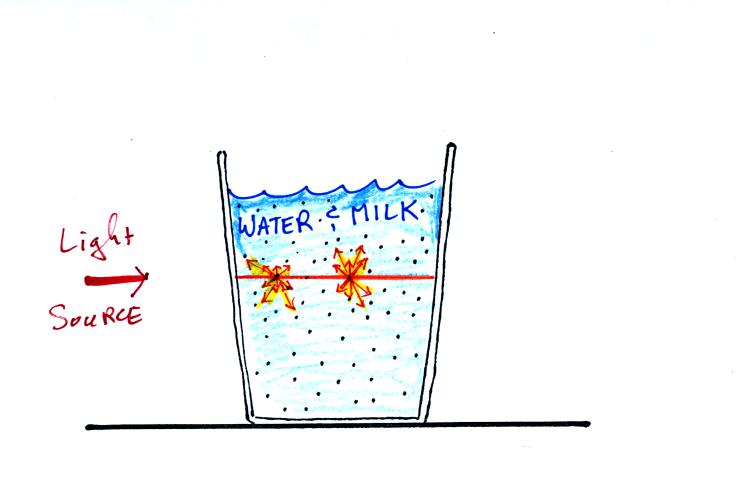 scattered by milk particles in the beam. This is single
