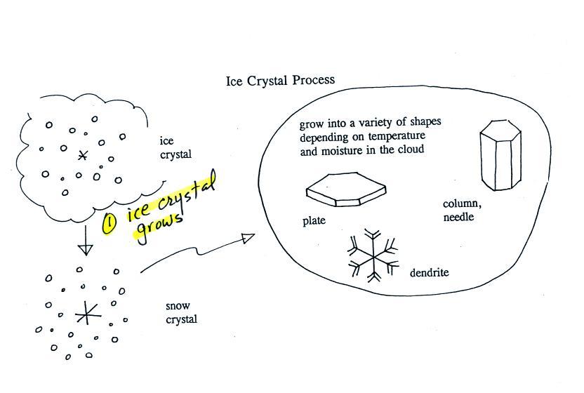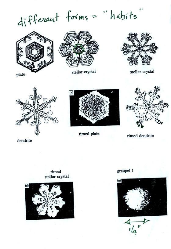(plates, dendrites, columns, needles, etc.; these are called crystal