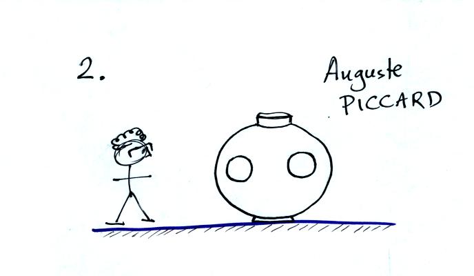 (F) Using a pressurized gondola, Piccard and Paul Kipfer made a
