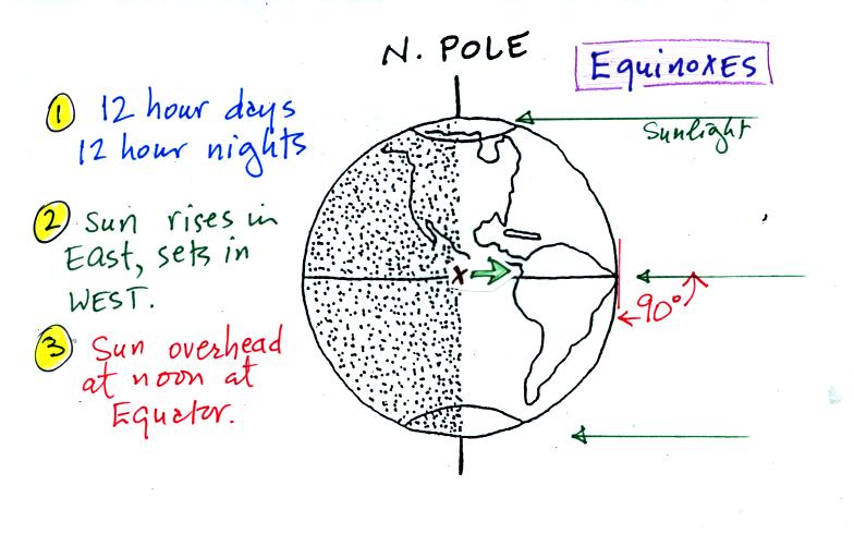 are 12 hours long, the sun is overhead at noon at the equator, and why