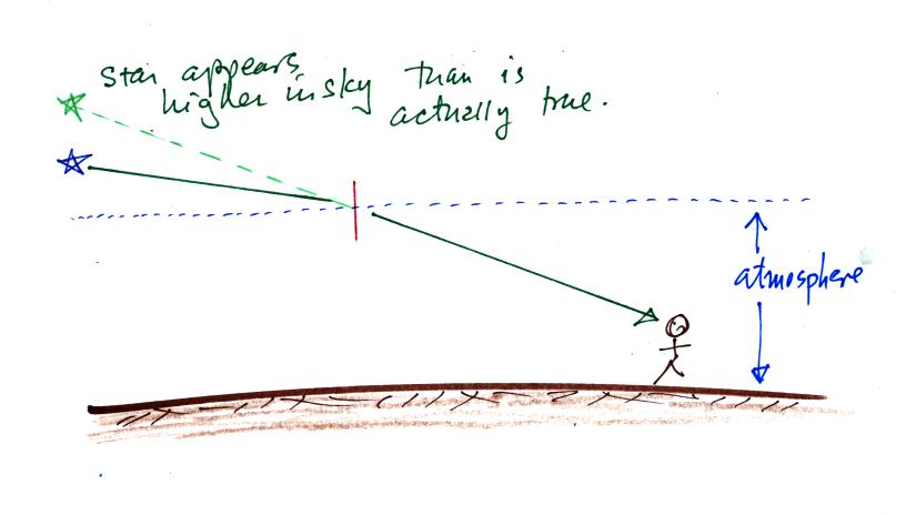 person on the ground thinks the star is higher in the sky than is