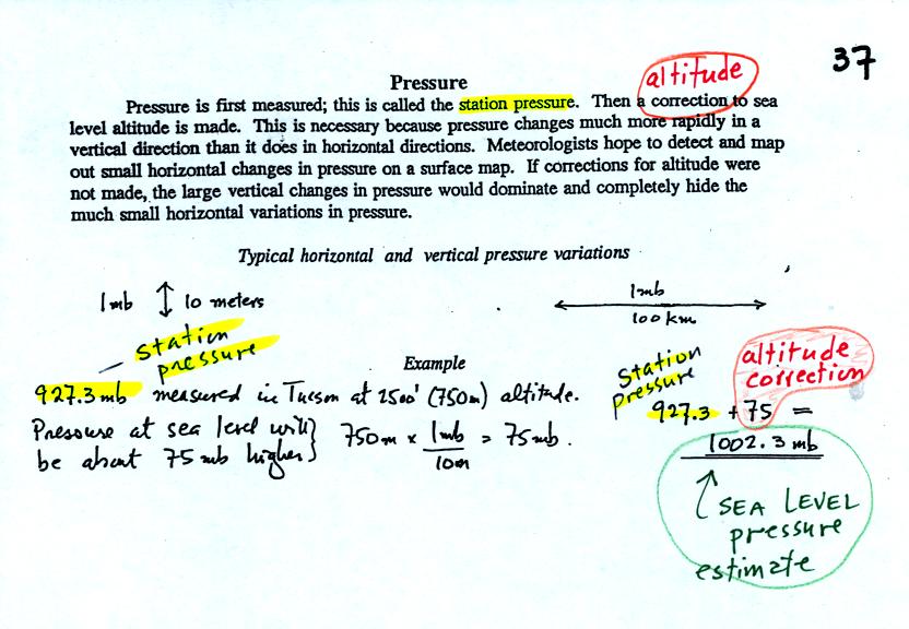level pressure estimate for Tucson is 927.3 + 75 = 1002.3 mb.