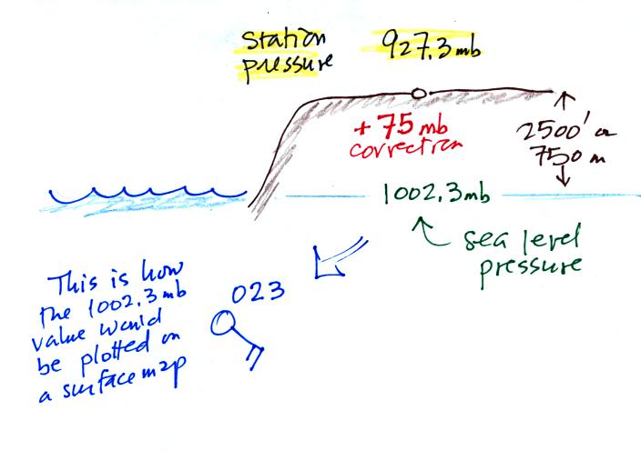 is about 750 meters above sea level, a 75 mb correction is added to the