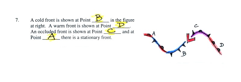 Cold fronts are normally drawn blue, warm fronts are red. An