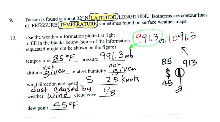 get a total change of 50 mb. Thus the station pressure is 1003.7