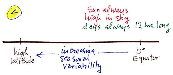 At low latitude (23.5 degrees) the sun is overhead but the days are