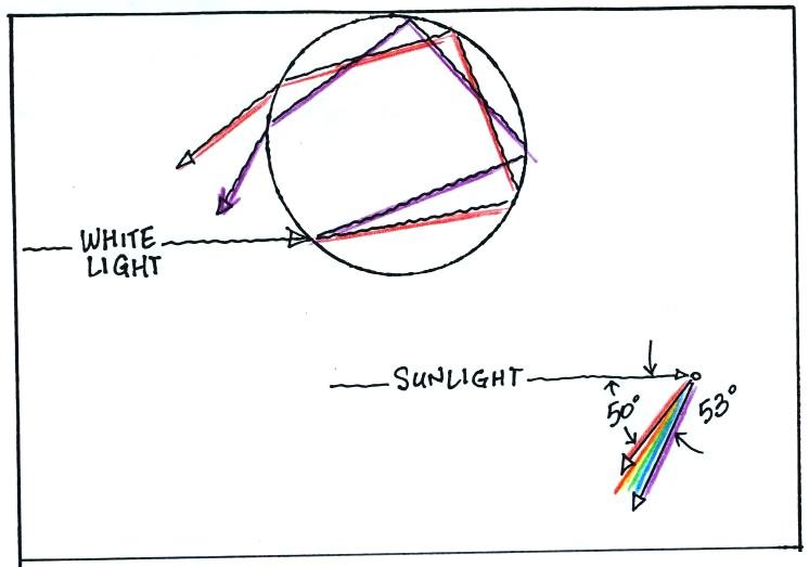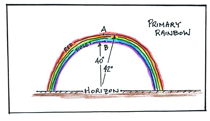 The following figure shows how this rainbow forms.