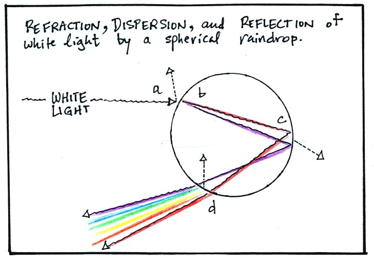 raindrop. Some of the white light is reflected (a). The remainder