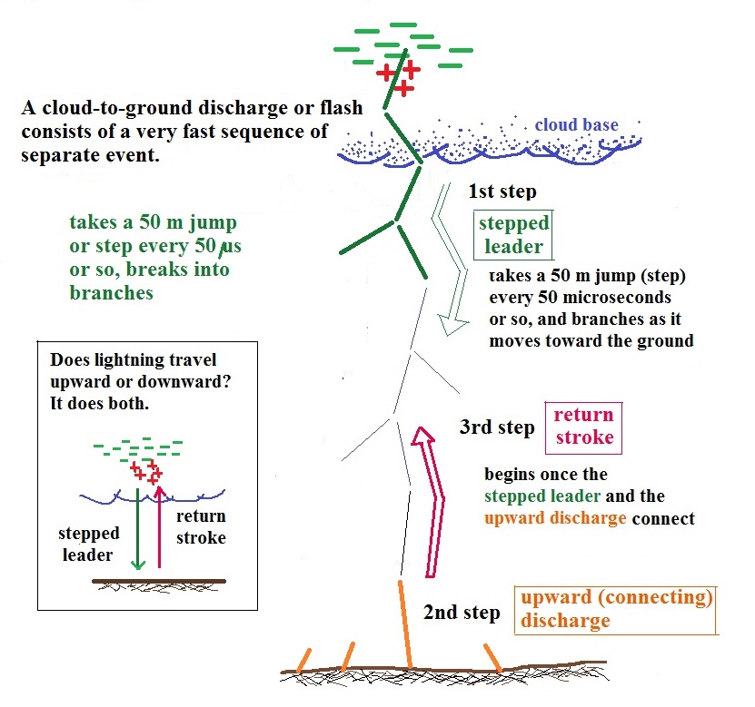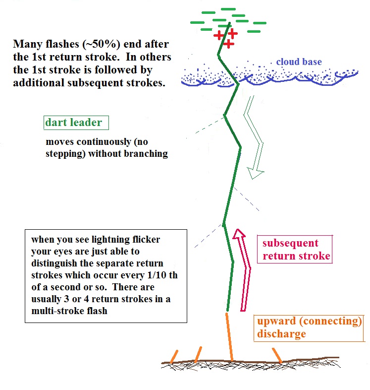 reaches the ground, an upward return stroke travels back up the