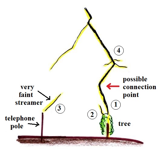 stepped leader (avoiding the branches). It is followed