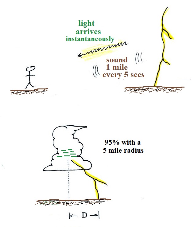 and the sound of thunder would mean the discharge was 3 miles