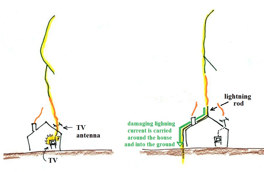 rods are shown above. When lightning strikes the
