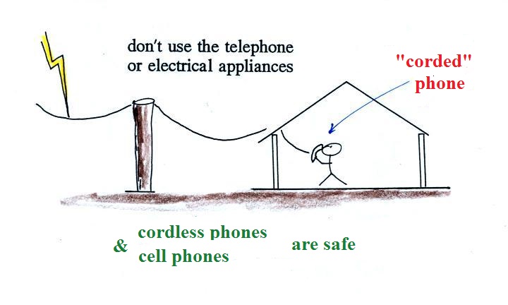 a corded phone or electrical appliances during a