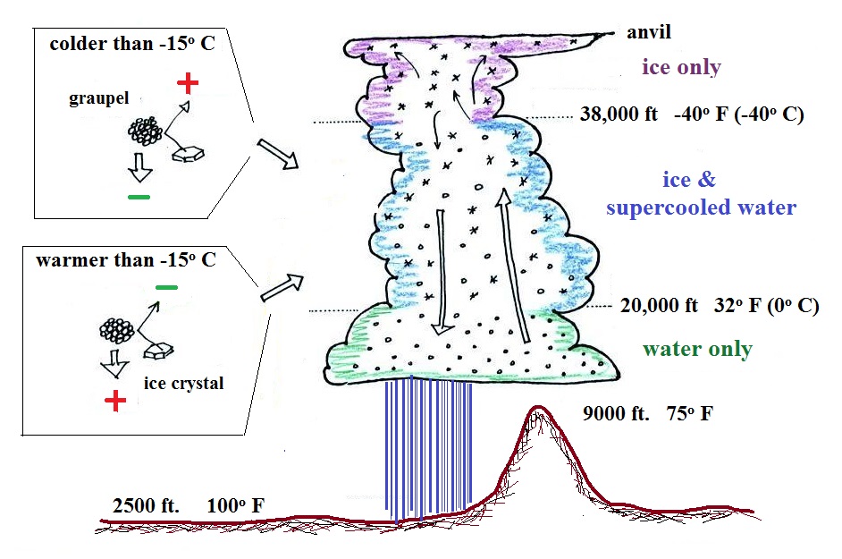 of the thunderstorm cloud to ground (shown at right in the