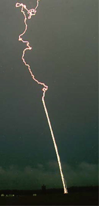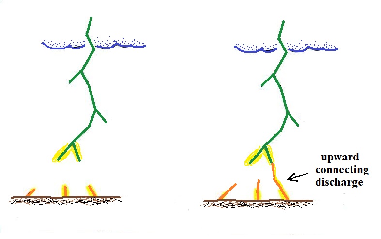 a lightning rod, an upward discharge launched off the