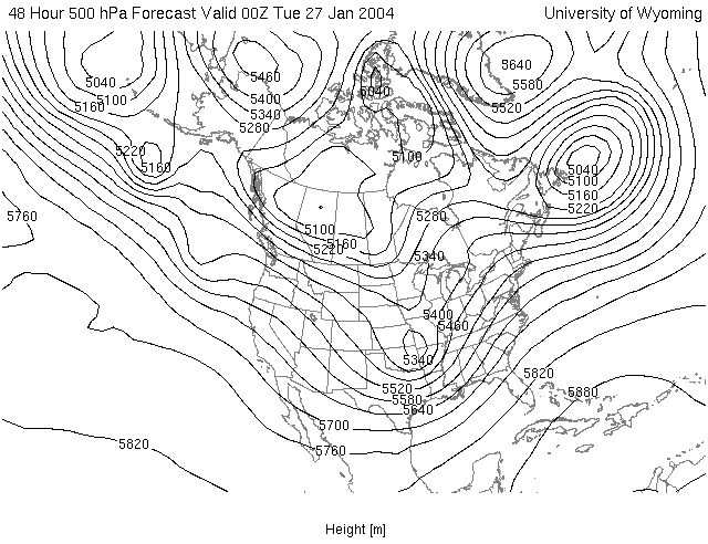 Examples of forecast discussions for maps below: 500 mb map for 00Z Tuesday, January 27, 2004