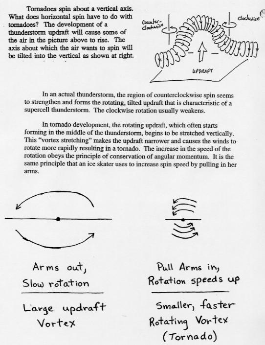 A comprehensive explanation behind the formation of tornadoes is given in the NOAA web page: tornadoes... Nature's Most Violent Storms A PREPAREDNESS GUIDE Including Safety Information for Schools U.S. DEPARTMENT OF COMMERCE National Oceanic and Atmospheric Administration National Weather Service September 1992 (NOAA, FEMA, The American Red Cross).
