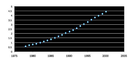 The increasing concentrations of four of these greenhouse gases are shown graphically below. Most, if not all, of the increases are due to human activities. Perhaps most alarming is that not only are the concentrations of these greenhouse gases increasing, but the rate of increase is also increasing. For example, lets take a look at how the rate of increase of carbon dioxide has increased over each 25 year period of the last century. Also note that there has been an additional 5.2% increase in carbon dioxide over the 8 year period from 2000-2008. (Note that this is not the case for methane as its growth rate had slowed during the 1990s and actually leveled out from 1998-2006; however, its concentration has increased again from 2006-2008).