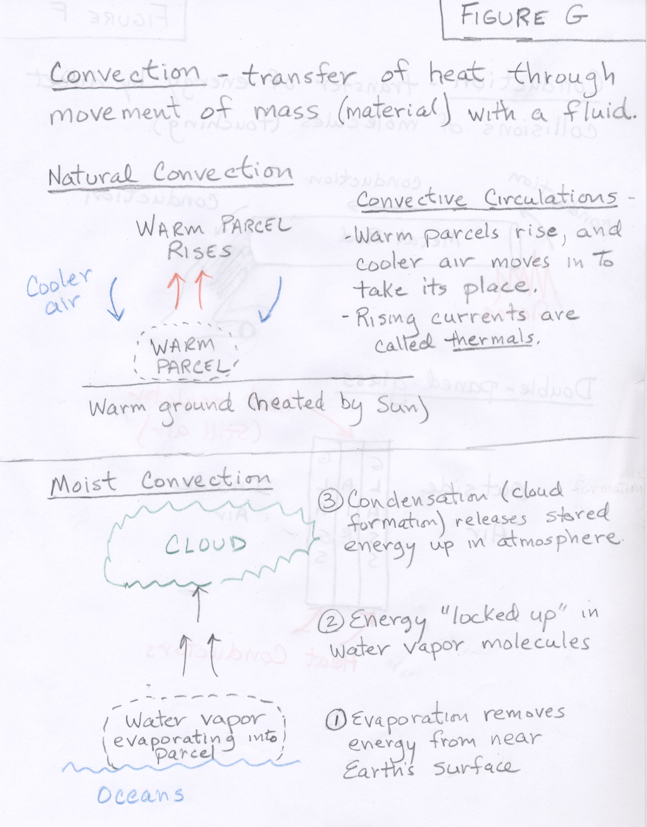 Convection is the transfer of heat by actual movement of mass within a fluid. Convection is a very important means of energy transport in the atmosphere, especially moist convection. Convection only occurs in fluids (liquids and gases), not in solids. In the atmosphere, we can think of convection happening when parcels of air (blobs of air about the size of large balloons) move around.
