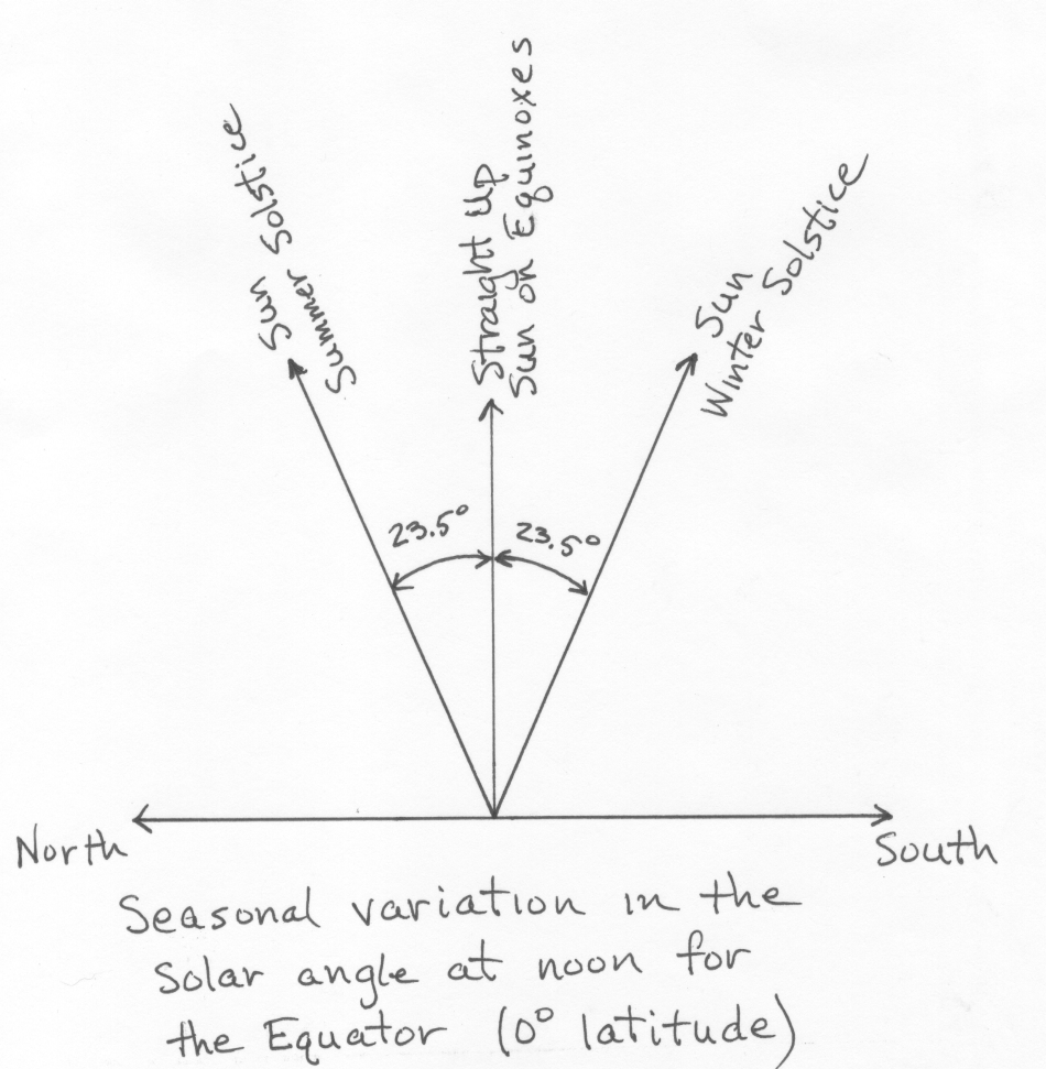 and the Equator, which is the position of the solar declination on Equinox days at 0° latitude)