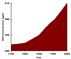 Nitrous oxide concentration (ppb) 1750-1998 Sulfur hexafluoride concentration (ppt) 1978-2000