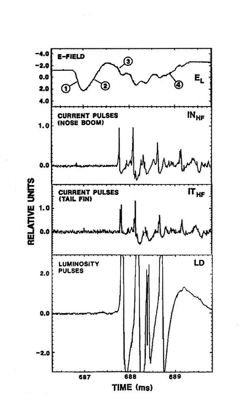 no data apparently from the 1984 experiment the 1988 experiment was conducted in the south of France A particular interest were the processes that occur at the beginning of lightning discharges triggered by the aircraft. |