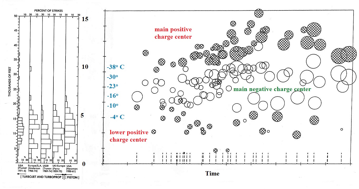 1980 - 1986 NASA Langley Research Center Storm Hazards Program used an F-106B aircraft About 1500 thunderstorm penetrations at altitudes ranging from 5000 to 40,000 ft. Struck by lightning 714 times. Almost 10 times as many strikes were recorded at high altitudes than at lower altitudes even though the numbers of penetrations at the different altitudes were about equal. |