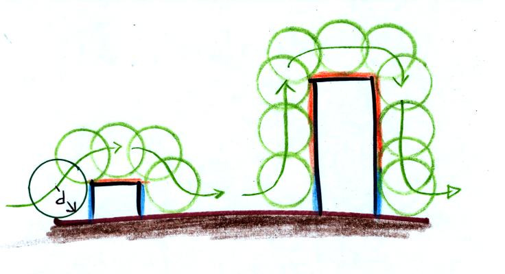 In the rolling sphere method, you imagine rolling a sphere of radius d
