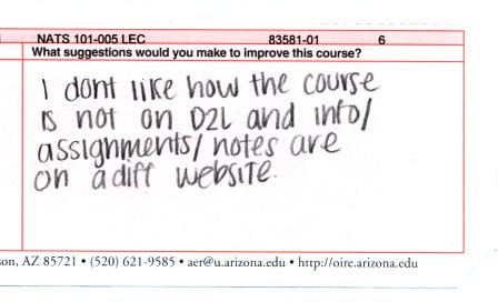 Final Exam: Scheduled for Thursday May 10 from 8 - 10 am in ILC 150 (be sure to double check the UA website to confirm this date and time). The final exam will contain about 50 questions that cover the entire course. The questions will be similar to those given on the quizzes.