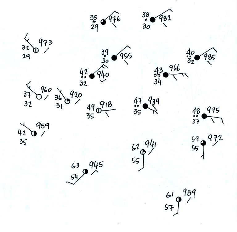 Here's the map with the isobars drawn in. On the map below