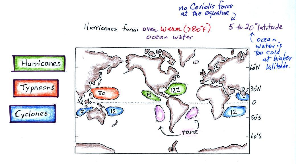 tropical storms per year 8 reach hurricane strength 0 hit the US coastline |